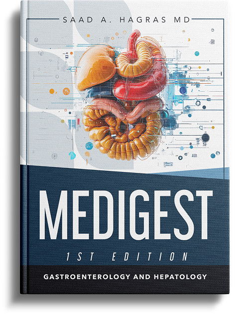 The comprehensive guide of MEDIGEST presents over 20 chapters covering gastroenterology and hepatology topics, including esophageal disorders, peptic ulcer disease, inflammatory bowel disease, malabsorption, gastrointestinal bleeding, pancreatic disorders, hepatic disorders, and more.